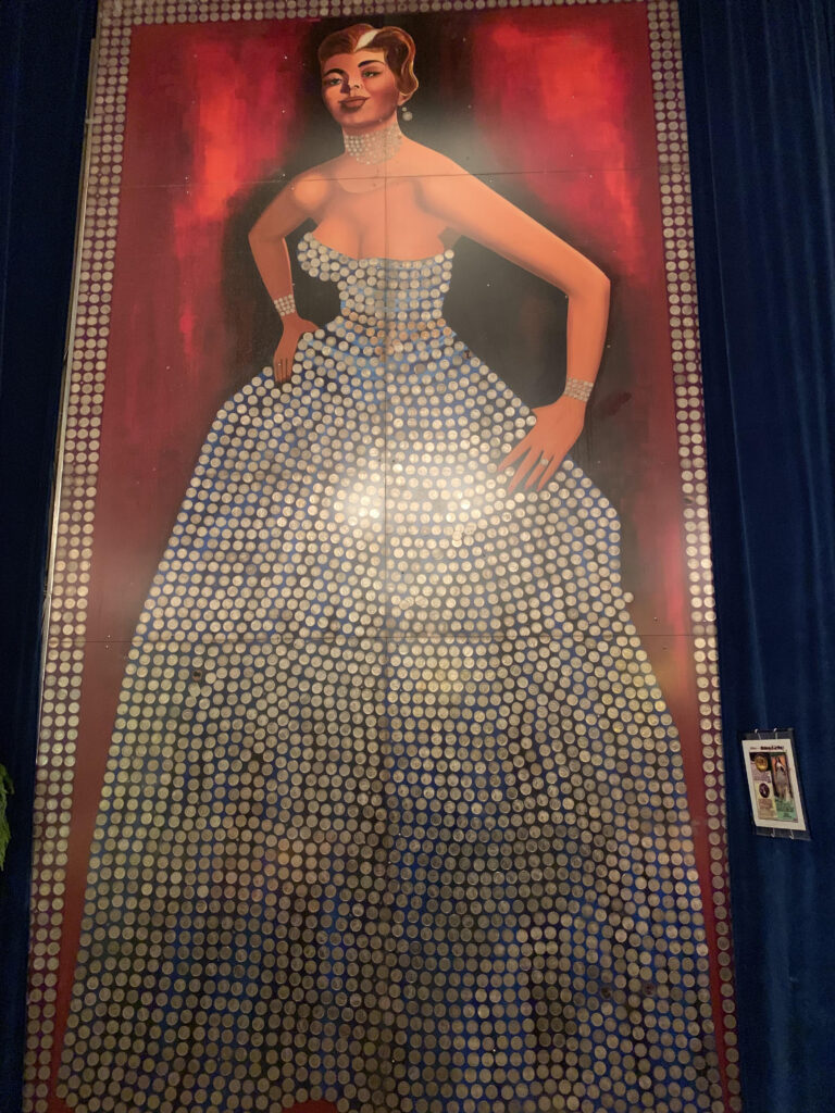 Visit the Silver Queen at 15-ft. tall and 8-ft. wide, a ceiling-touching painting of a lady in an evening gown decorated with 3,261 “Morgan” silver dollars.